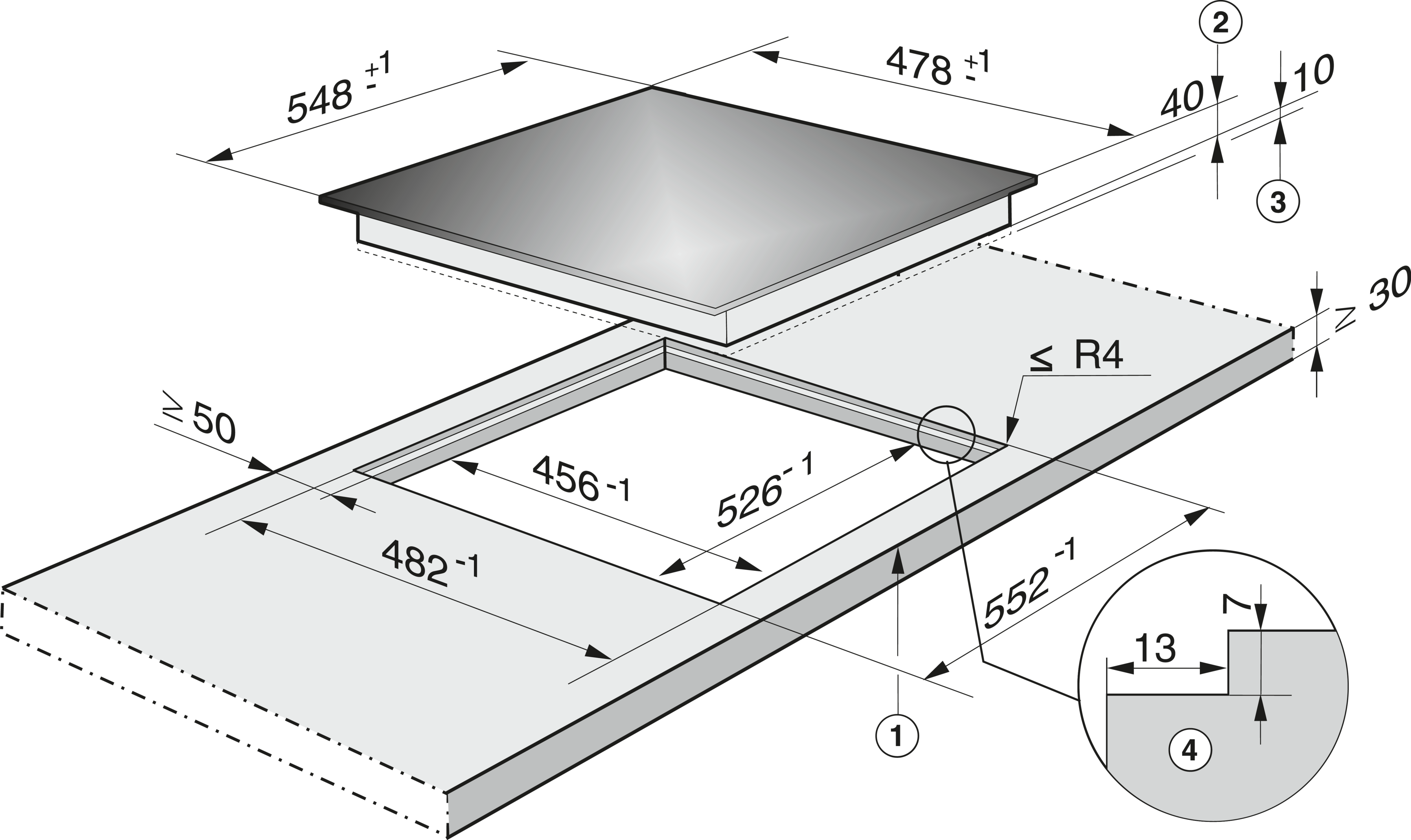 Внешние размеры выреза в мм (ширина) для встраивания заподлицо